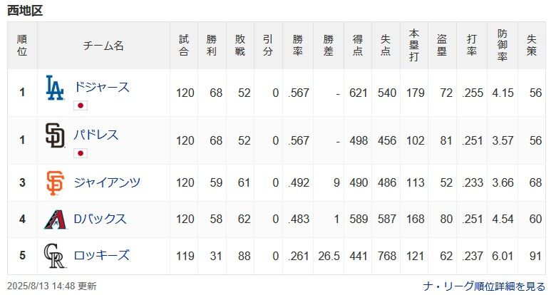 明日大谷が打たれたらドジャース地区2位wwwwwwwwwwwwwwwwww