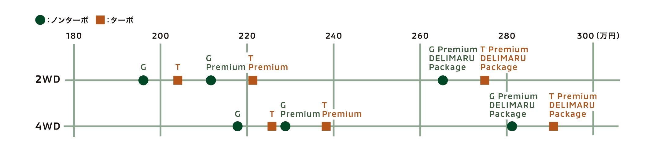 >>車両本体のメーカー希望小売価格(予定、消費税10%込)は、『デリカミニ』が約195万円~約295万円、