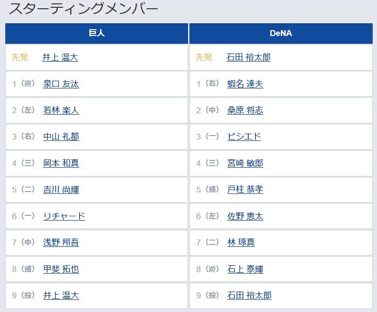 【巨人対DeNA20回戦】3(右) 中山 礼都 7(中) 浅野 翔吾
