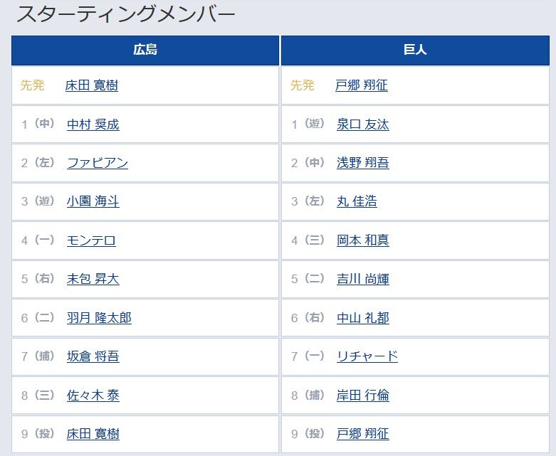 【巨人】【広島】