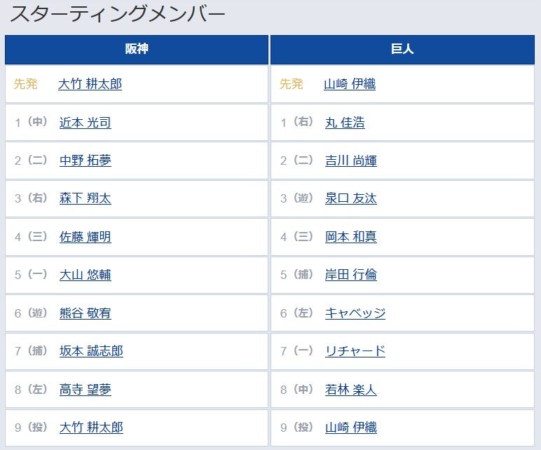 【阪神対巨人22回戦】6(左) キャベッジ 8(中) 若林 楽人