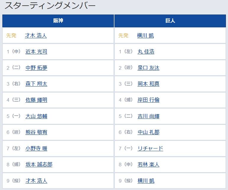 【阪神対巨人24回戦】4(捕) 岸田 行倫 8(中) 若林 楽人
