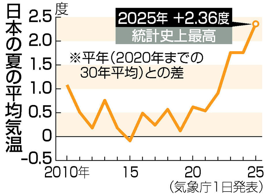 【気象庁】今夏の日本の平均気温が平年を2.36度上回り1898年の統計開始以降で最高