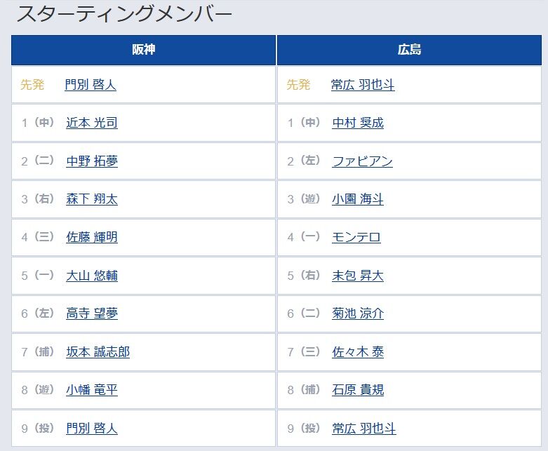 【阪神対広島22回戦】6(左) 高寺 望夢 8(遊) 小幡 竜平