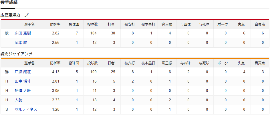 カープ痛恨5連敗で自力CS消滅。床田プロ1号2ラン&マルチ!小園猛打賞&先制打!坂倉フェン直適時打!今季ワースト借金13で3位と5G差【広島4-6巨人/試合結果】