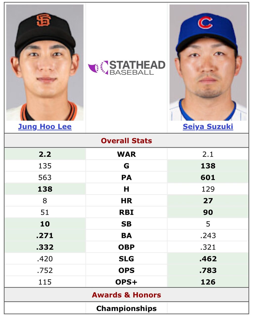 【悲報】最強右打者の鈴木誠也さん、イ・ジョンフにrWARでも負けて遂にアジア人2番手ですら無くなる