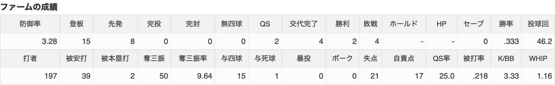 カープドミンゲス(2軍)『防3.28 奪三振率9.64 (ポテンシャルあり)』←来季も契約するべき?