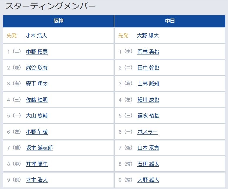 【阪神対中日21回戦】2(遊) 熊谷 敬宥 8(中) 井坪 陽生