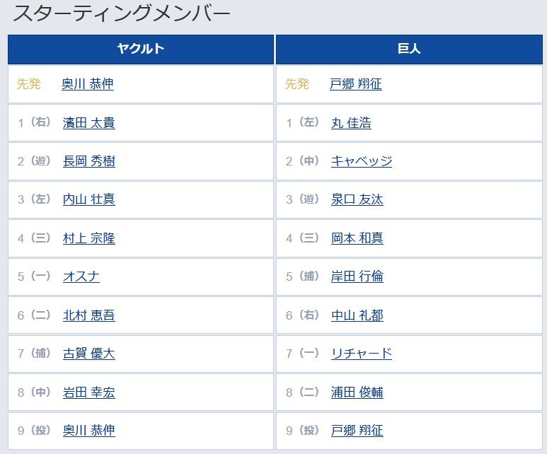 9 (投) 奥川 恭伸 9 (投) 戸郷 翔征