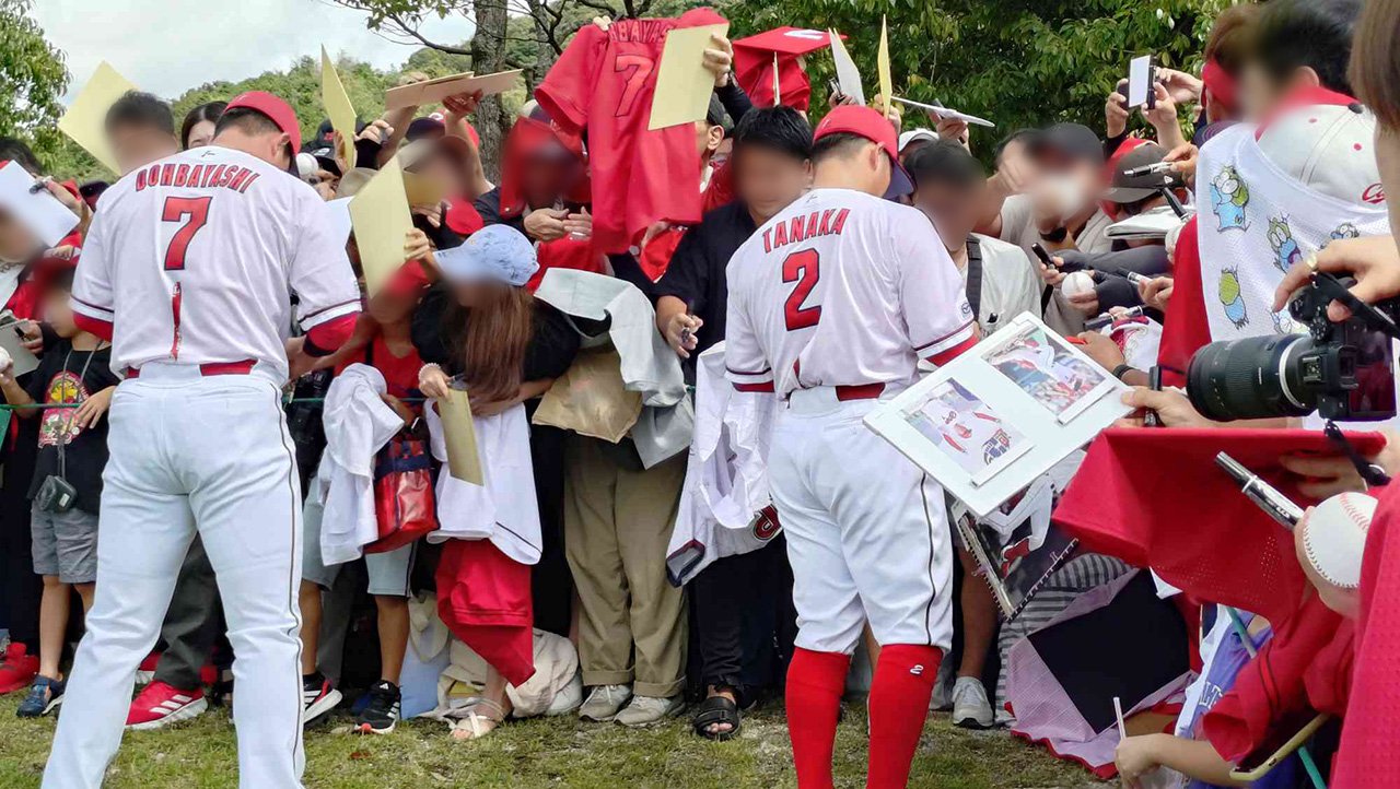 カープ堂林&田中広輔が由宇2軍最終戦でサイン会。カープファンに神対応