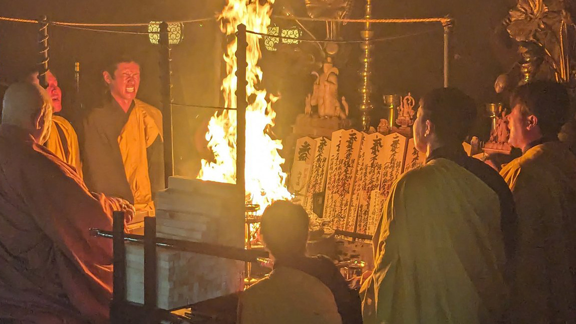 カープ中村奨成、初の護摩行!末包&堂林&會澤らと火柱の前で真言を叫び続ける
