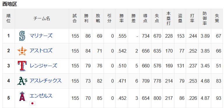 マリナーズさん今日勝てば地区優勝ほぼ確定