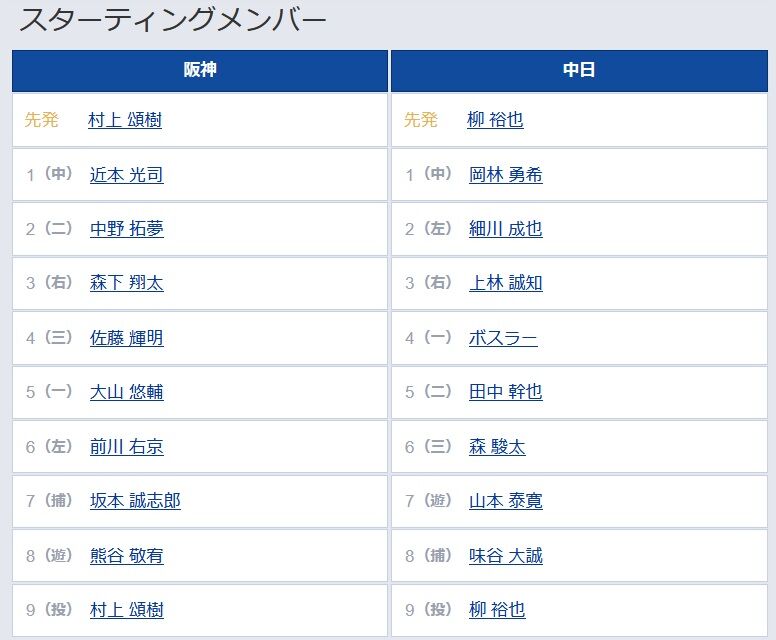 【阪神対中日23回戦】4(三) 佐藤 輝明 5(一) 大山 悠輔