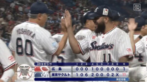最後は #杉山一樹 投手が締めて試合終了❗️#楽天イーグルス 3-4 #福岡ソフトバンク で