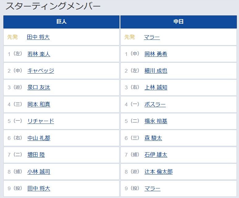 【巨人対中日24回戦】8(捕) 小林 誠司 9(投) 田中 将大