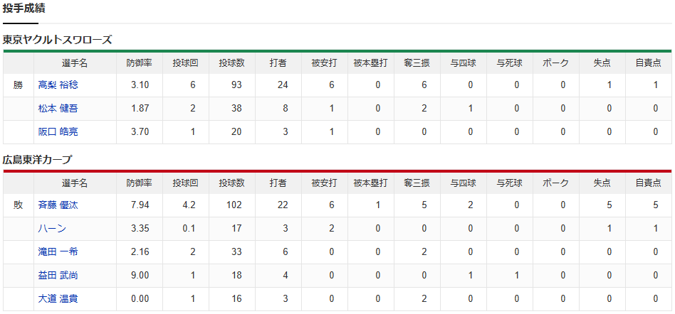 カープ小園〝大山超え〟最高出塁率獲得!斉藤4.2回5失点KO。滝田-益田-大道0封リレー!奨成マルチ!久保1安打!反撃は矢野タイムリーのみ【広島1-6ヤクルト/試合結果】