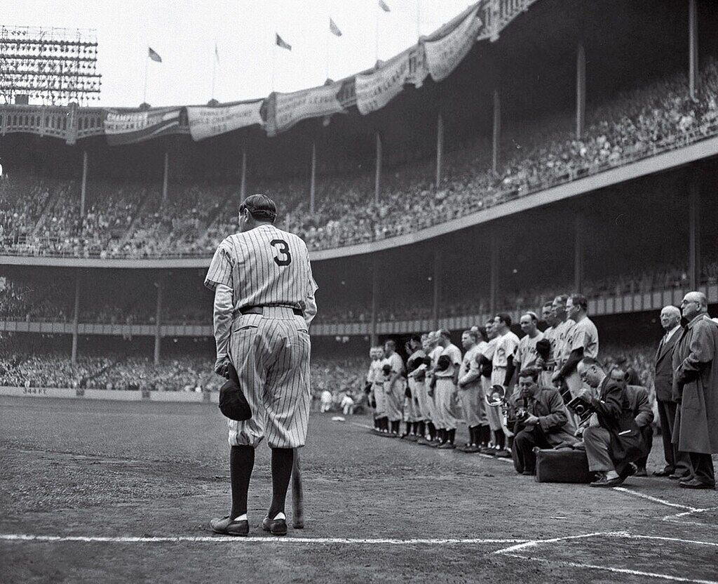 Nathaniel Fein – Time 100 Photos: The Babe Bows Out. Originally published in the New York Herald Tribune. Cropped from the source image to reflect the portions of the photograph that were published in newspapers at the time., パブリック・ドメイン, https://commons.wikimedia.org/w/index.php?curid=88594714による