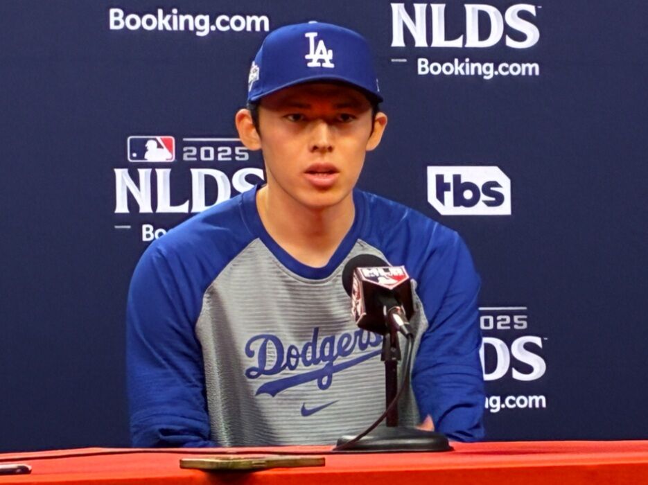 ドジャース・佐々木朗希投手(23)が3日(日本時間4日)、あす4日(同5日)に行われる地区シリーズ第1戦の敵地・フィリーズ戦を前に行われる全体練習前に敵地・シチズンズバンクパーク(フィラデルフィア)で行われた会見に出席した。