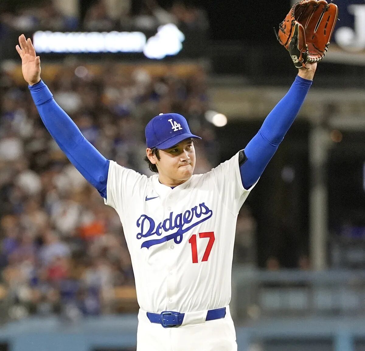 ドジャース・大谷翔平投手(31)が17日(日本時間17日午前9時38分開始予定)、無傷3連勝で突破に王手をかけて迎えたナ・リーグ優勝決定シリーズ第4戦の本拠地・ブルワーズ戦のスタメンに「1番・投手」で名を連ねた。ポストシーズン自身2連勝、9試合ぶりの3号本塁打での二刀流の活躍に期待がかかる。