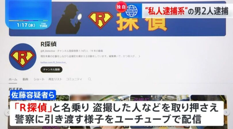私人逮捕系ユーチューバー「R探偵」男2人を逮捕 女性を盗撮した男性に口止め料として現金要求疑い
