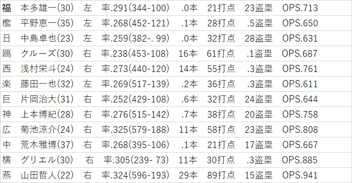 10年前の12球団のセカンド→広島菊池、阪神上本、巨人片岡、ヤク山田、横浜グリエル、中日荒木