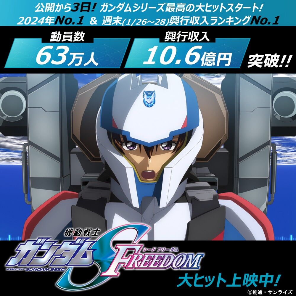 ガンダムSEEDフリーダム ガンダム史上最高の公開3日で63万人動員、興行収入10億円突破!!