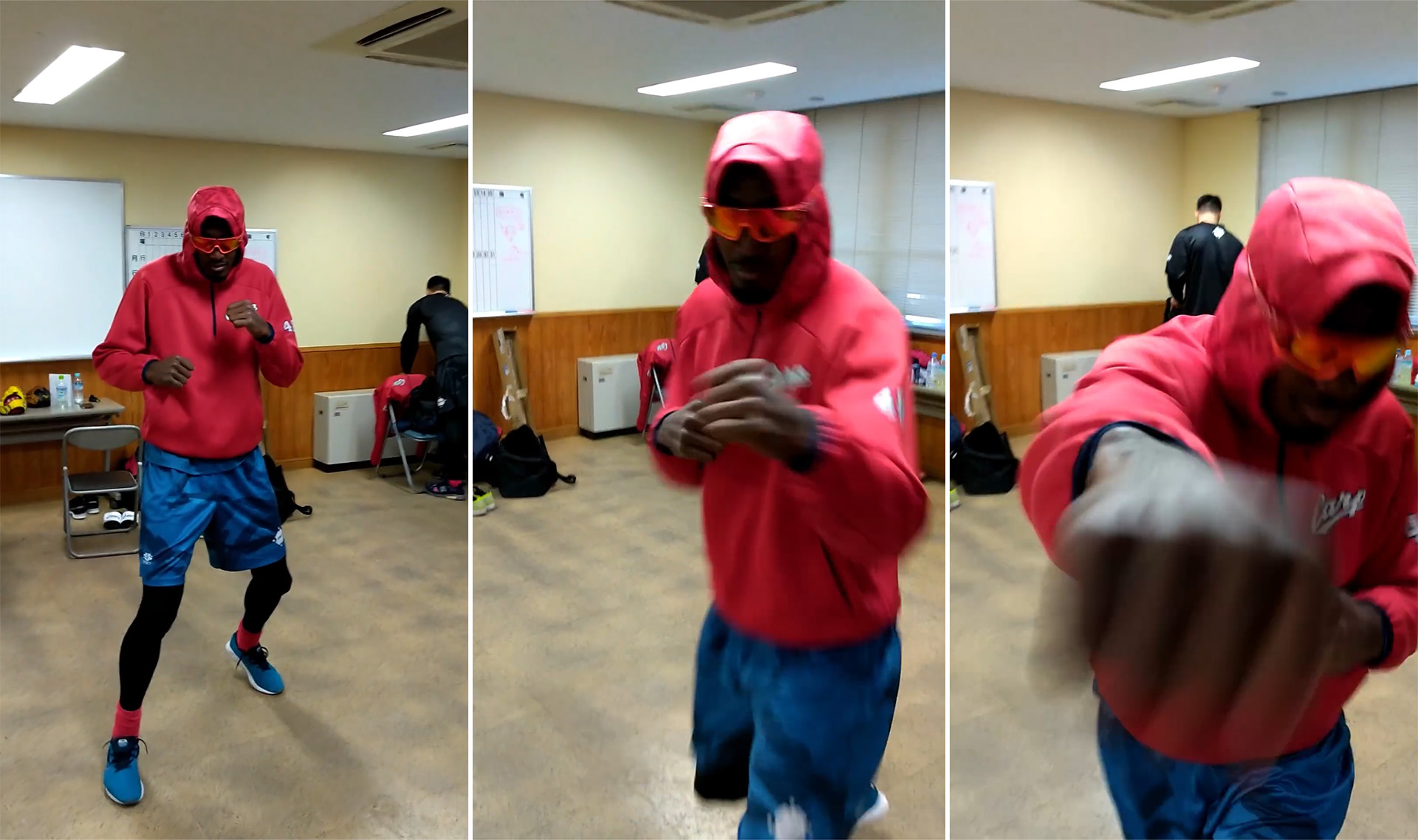 「がんばるしかねぇ」と綴った投稿に登場したのは、チームの赤いパーカーをかぶりサングラスを掛けたアドゥワ誠。ファイティングポーズを取ったアドゥワは、華麗なステップを披露しカメラに向かって右ストレートを打ち込むなど、〝万全〟な状態をアピールしている。