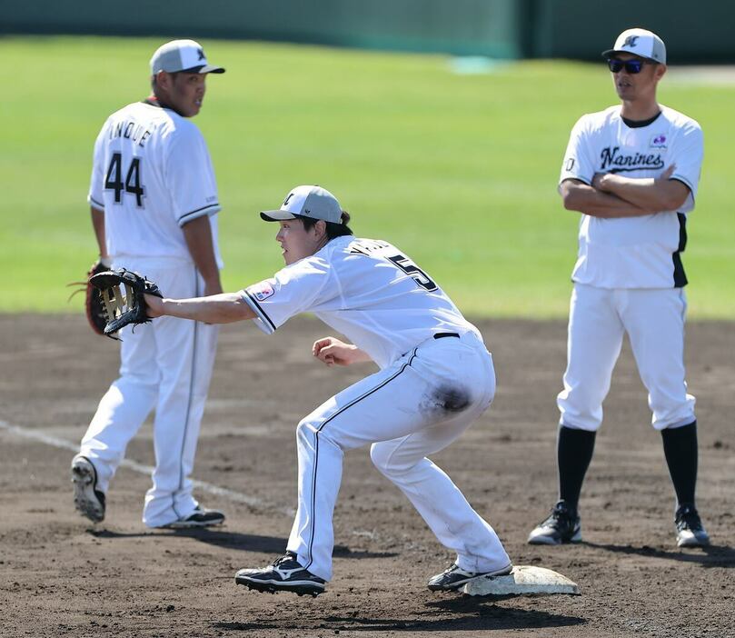 このオフは中村が二塁から三塁、藤岡が遊撃から二塁に転向。三塁がメインだった安田も一塁で練習しており、この日は早出で一塁ミットでの捕球練習をこなした。