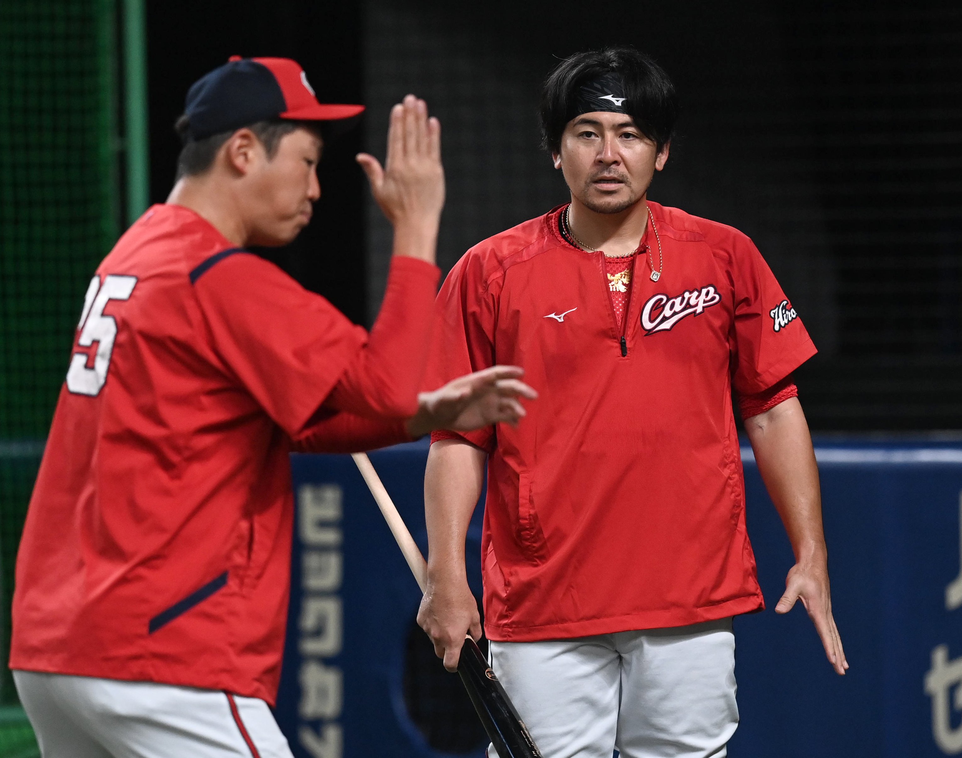 カープ會澤翼がセカンド&サードの守備練習に参加!バックハンドトスも披露