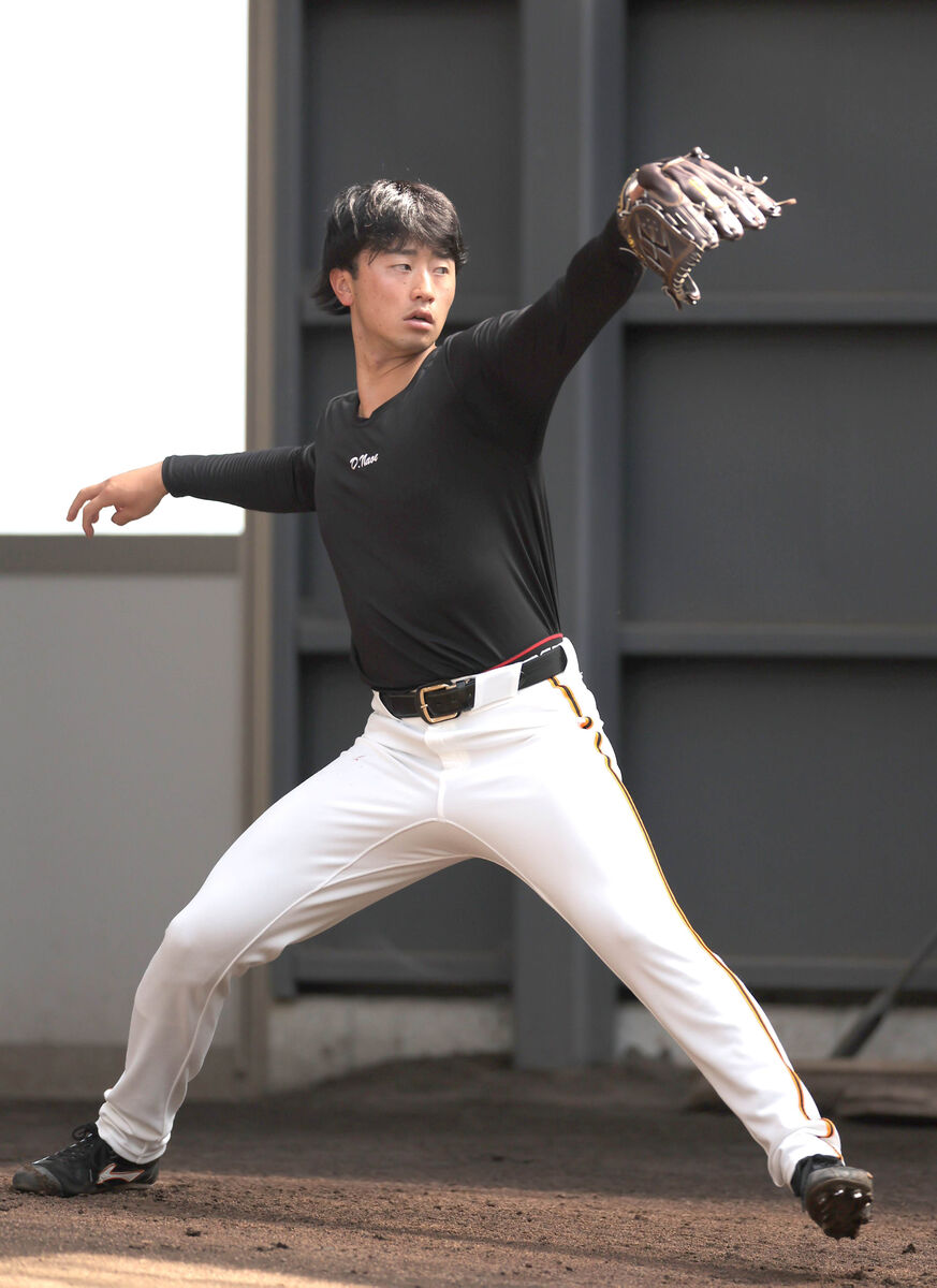 今季初の実戦となった11日の紅白戦(サンマリン宮崎)では3回に紅組の3番手で登板。先頭からの連打に味方の失策が絡んで無死一、三塁のピンチを背負った。ここで湯浅を右飛に打ち取り、松原は四球で歩かせて満塁となったが、最後は秋広を外角148キロ直球で遊ゴロ併殺に仕留めて1回無失点としていた。