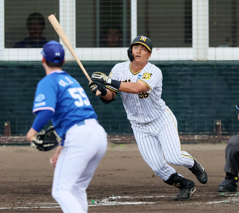 高卒3年目の阪神前川右京外野手(20)が「アレネット」直撃の先制2ランを放った。