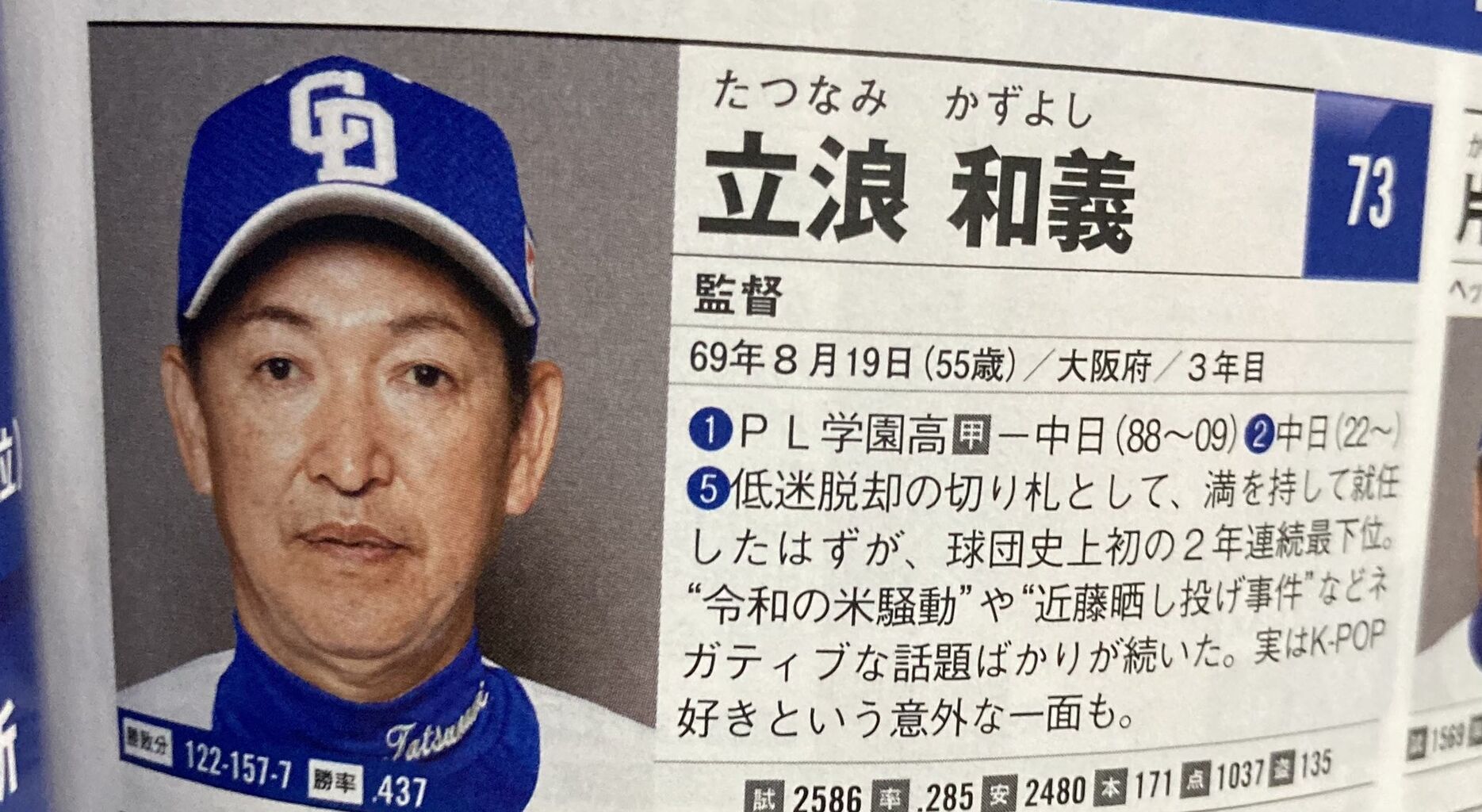 立浪監督、選手名鑑で意外な事実が発覚へ