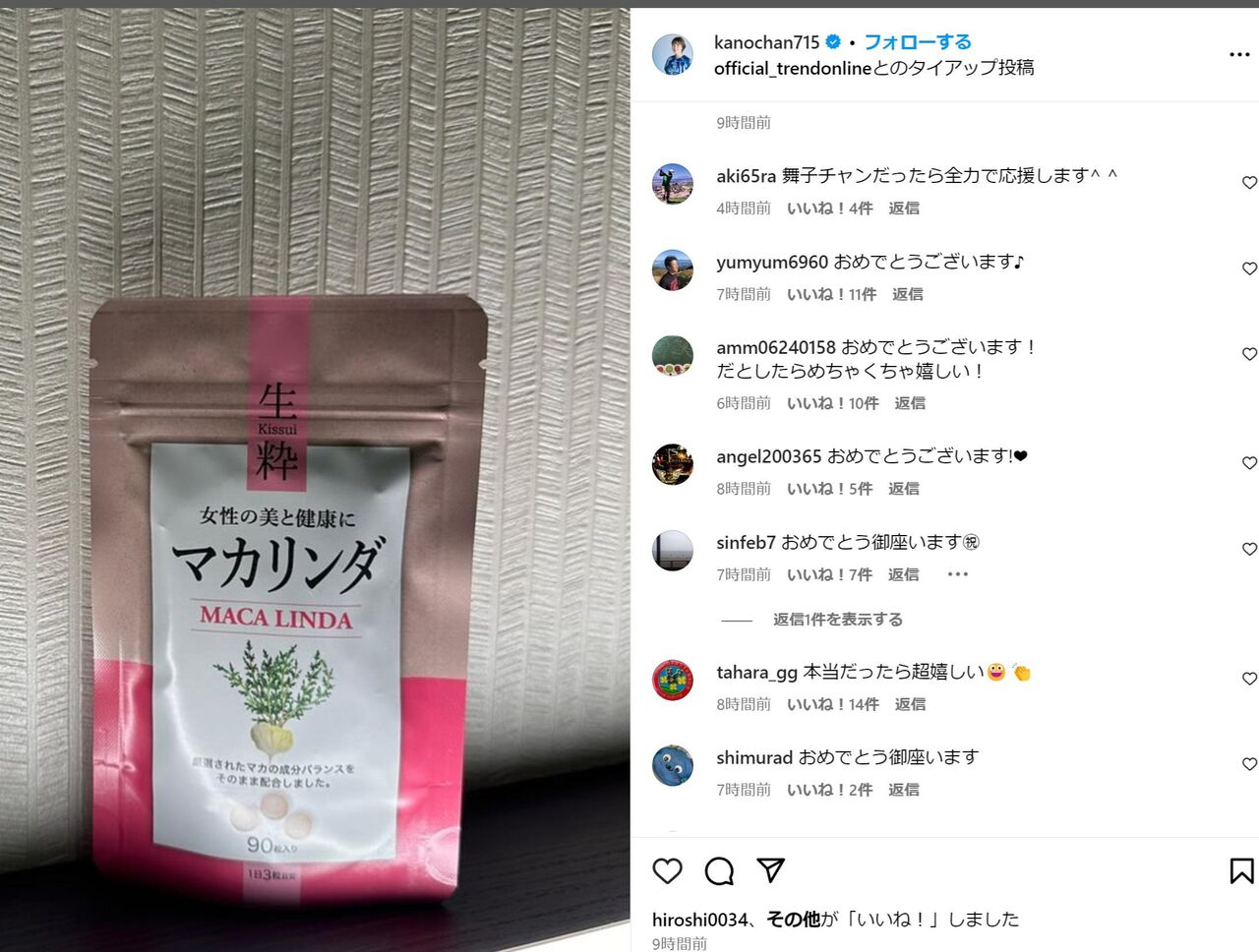 狩野舞子さんのインスタに祝福メッセージが殺到