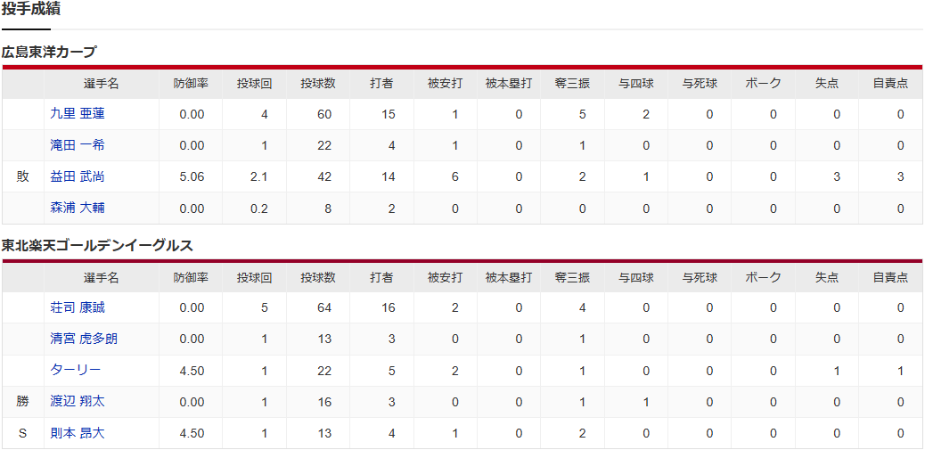 カープ堂林先制2塁打!九里4回5K0封!滝田1回0封!森浦火消し!益田2回好投も5連打浴び3失点。ターリー勝ち運発動で逆転負け【広島1-3楽天/OP戦試合結果】