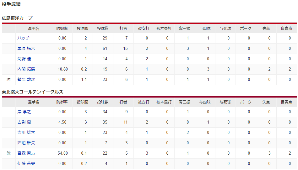 カープ高木2安打&2点タイムリー逆転打!林タイムリー2塁打!ハッチ2回0封!黒原4回0封!塹江回跨ぎ!土壇場9回に3得点で逆転勝ち!【広島3-2楽天/OP戦試合結果】