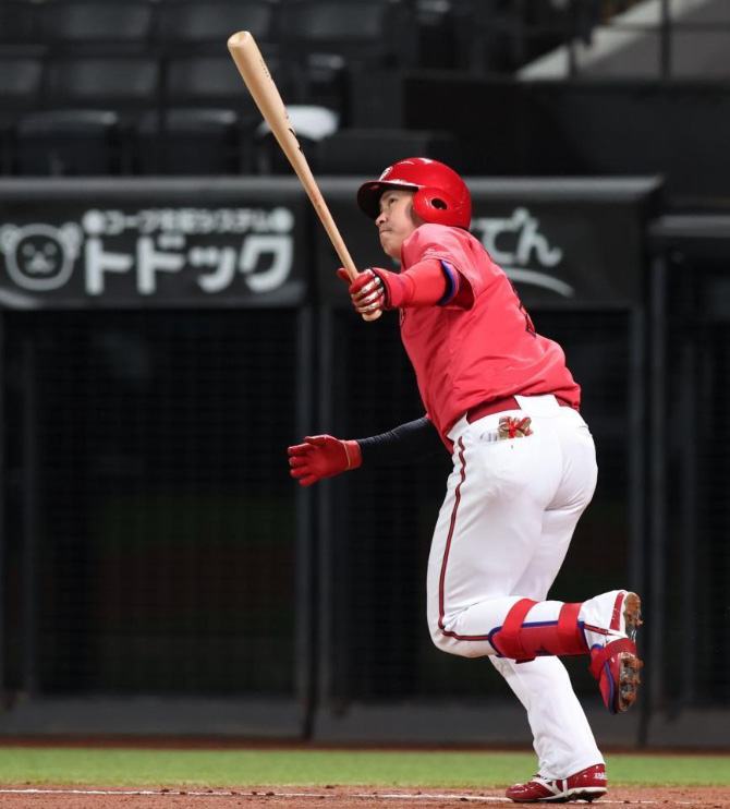 カープ堂林、日ハム根本からOP戦1号ホームラン!エスコンFで完璧弾!!