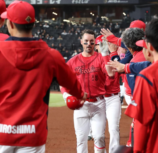 カープ・レイノルズ、1号2ランホームラン!主砲候補に待望の一発