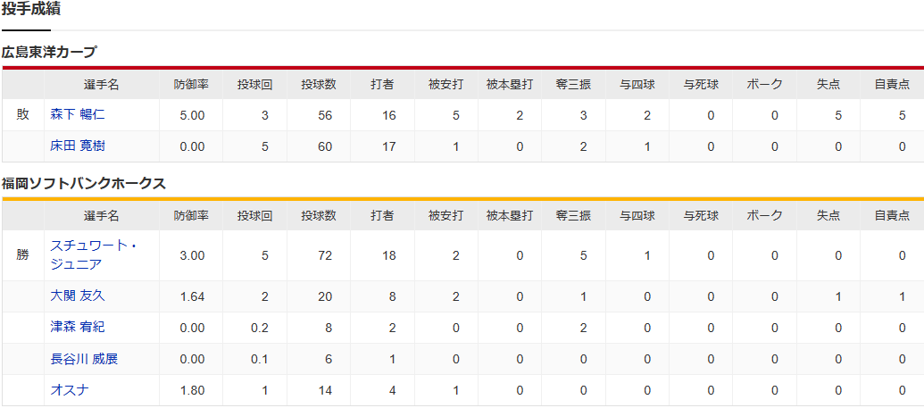 カープ森下3回2被弾5失点炎上。床田5回1安打0封!松山オスナ撃ち!レイ1打点も5安打1得点で敗戦。OP戦負け越し決定【広島1-5SB/試合結果】