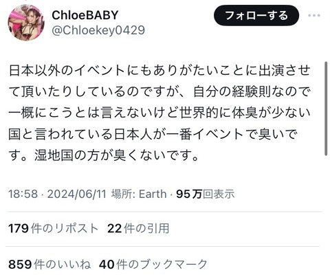 【悲報】世界的人気コスプレイヤー「日本のオタクが一番臭い」 2024年6月13日 最終更新日時 : 2024年6月13日 loki.5ch.net カープドラ6西川篤夢!「日本を代表する遊撃手になりたい」【ドラフト会議2025】 カープドラ5赤木晴哉!191cm最速153キロ!佛教大の本格派右腕!【ドラフト会議2025】 カープドラ4工藤泰己!159キロ北の剛腕!【ドラフト会議2025】 カープドラ3勝田成!近畿大163cmセカンド!菊池涼介の後継者候補!【ドラフト会議2025】 カープドラ2齊藤汰直!亜大152キロエース!【ドラフト会議2025】 カープドラ1平川蓮!187cmのスイッチヒッター!立石正広を外し2度目の重複も新井監督がクジを引き当てる!【ドラフト会議2025】 【カープ実況】ドラフト会議2025!ドラ1立石正広の獲得なるか 緒方孝市カープドラ3指名で青学出禁!澤﨑俊和の逆指名まで10年間スカウト出禁 【朗報】広島、攻守最強都市だったwww 【悲報】彼女「ごめん!俺くんの貯金、情報商材に使っちゃった」→…問い詰めたらギャン泣きされたんだが俺が悪いのか? 【悲報】世界的人気コスプレイヤー「日本のオタクが一番臭い」 1:それでも動く名無し 警備員[Lv.8][新芽]:2024/06/12(水) 16:48:32.43 ID:w3BgOpXQ0 続きを読む 続きを見る カープドラ6西川篤夢!「日本を代表する遊撃手になりたい」【ドラフト会議2025】 カープドラ5赤木晴哉!191cm最速153キロ!佛教大の本格派右腕!【ドラフト会議2025】 カープドラ4工藤泰己!159キロ北の剛腕!【ドラフト会議2025】 カープドラ3勝田成!近畿大163cmセカンド!菊池涼介の後継者候補!【ドラフト会議2025】 カープドラ2齊藤汰直!亜大152キロエース!【ドラフト会議2025】 カープドラ1平川蓮!187cmのスイッチヒッター!立石正広を外し2度目の重複も新井監督がクジを引き当てる!【ドラフト会議2025】 【カープ実況】ドラフト会議2025!ドラ1立石正広の獲得なるか 緒方孝市カープドラ3指名で青学出禁!澤﨑俊和の逆指名まで10年間スカウト出禁 関連記事 関連記事はありません。