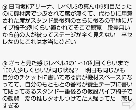 【炎上】日向坂Kアリーナパイプ椅子事件 運営の不手際で200人近くが座席無し