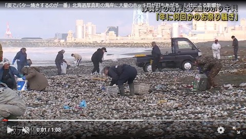 北海道で大量のホッキ貝うちあげられる (※画像あり)