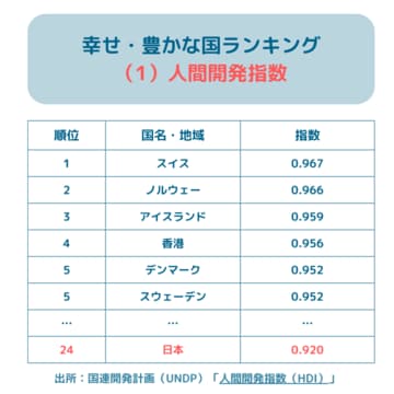 2024年3月13日に、国連開発計画が「人間開発指数」について最新の報告書を発表した。名前だけを見ると少し不気味な印象を受けるかもしれないが、これは国民の所得や教育水準、平均寿命をもとに算出されたその国の豊かさを示すものだ。
