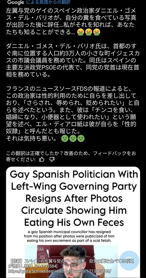 【悲報】スペインのLGBT政治家さん自分のウンコ食ってる画像が流出して辞任してしまう… 2024年4月15日 最終更新日時 : 2024年4月15日 loki.5ch.net カープドラ6西川篤夢!「日本を代表する遊撃手になりたい」【ドラフト会議2025】 カープドラ5赤木晴哉!191cm最速153キロ!佛教大の本格派右腕!【ドラフト会議2025】 カープドラ4工藤泰己!159キロ北の剛腕!【ドラフト会議2025】 カープドラ3勝田成!近畿大163cmセカンド!菊池涼介の後継者候補!【ドラフト会議2025】 カープドラ2齊藤汰直!亜大152キロエース!【ドラフト会議2025】 カープドラ1平川蓮!187cmのスイッチヒッター!立石正広を外し2度目の重複も新井監督がクジを引き当てる!【ドラフト会議2025】 【カープ実況】ドラフト会議2025!ドラ1立石正広の獲得なるか 緒方孝市カープドラ3指名で青学出禁!澤﨑俊和の逆指名まで10年間スカウト出禁 【朗報】広島、攻守最強都市だったwww 【悲報】彼女「ごめん!俺くんの貯金、情報商材に使っちゃった」→…問い詰めたらギャン泣きされたんだが俺が悪いのか? 【悲報】スペインのLGBT政治家さん自分のウンコ食ってる画像が流出して辞任してしまう… 1:それでも動く名無し:2024/04/15(月) 07:24:43.62 ID:eVV5kds8.net 2:それでも動く名無し:2024/04/15(月) 07:26:03.02 ID:JOO7r9Aw0.net 別にうんちくらい食べるやろ 4::2024/04/15(月) 07:27:04.48 ID:QpjX4J5D0.net これも差別ら 続きを読む 続きを見る カープドラ6西川篤夢!「日本を代表する遊撃手になりたい」【ドラフト会議2025】 カープドラ5赤木晴哉!191cm最速153キロ!佛教大の本格派右腕!【ドラフト会議2025】 カープドラ4工藤泰己!159キロ北の剛腕!【ドラフト会議2025】 カープドラ3勝田成!近畿大163cmセカンド!菊池涼介の後継者候補!【ドラフト会議2025】 カープドラ2齊藤汰直!亜大152キロエース!【ドラフト会議2025】 カープドラ1平川蓮!187cmのスイッチヒッター!立石正広を外し2度目の重複も新井監督がクジを引き当てる!【ドラフト会議2025】 【カープ実況】ドラフト会議2025!ドラ1立石正広の獲得なるか 緒方孝市カープドラ3指名で青学出禁!澤﨑俊和の逆指名まで10年間スカウト出禁 関連記事 関連記事はありません。