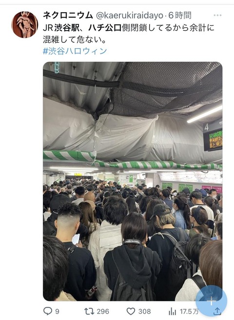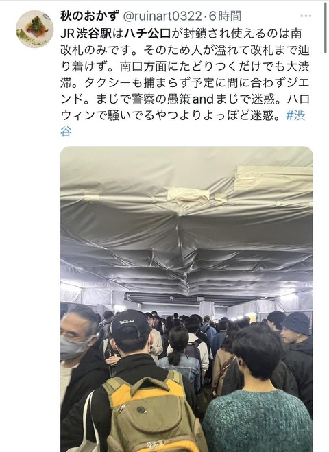 【画像】ハロウィン対策でハチ公口封鎖の渋谷駅、梨泰院みたいに大混雑してしまうwwwwwwww