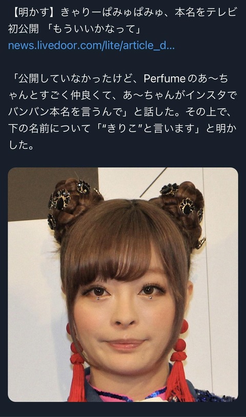 きゃりーぱみゅぱみゅさん、ついに本名を明かす!