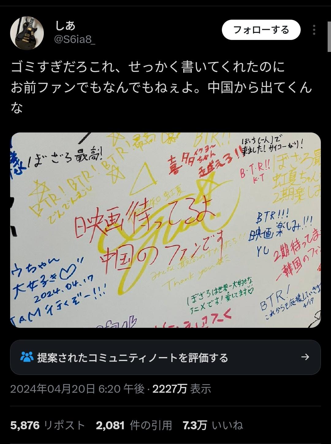 【画像】オタクさん、マナーの悪い中国人にブチギレ!Xで大炎上してしまうwwwwwwww
