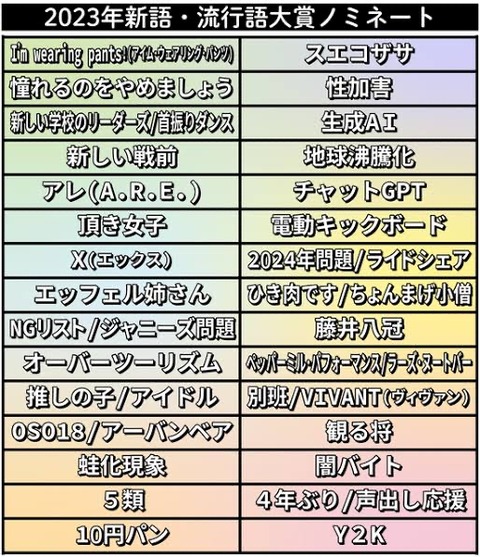 【悲報】2023電通流行語大賞候補、発表されるwwwwwwwwwwww