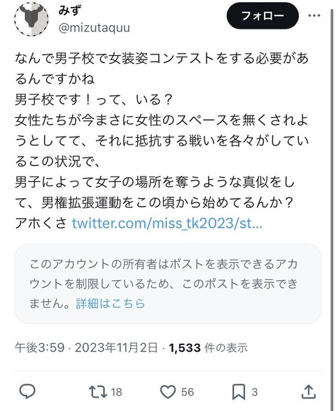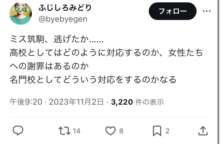 筑駒の学祭、ツイフェミによって炎上させられて鍵垢になった上に謝罪を要求されてしまう