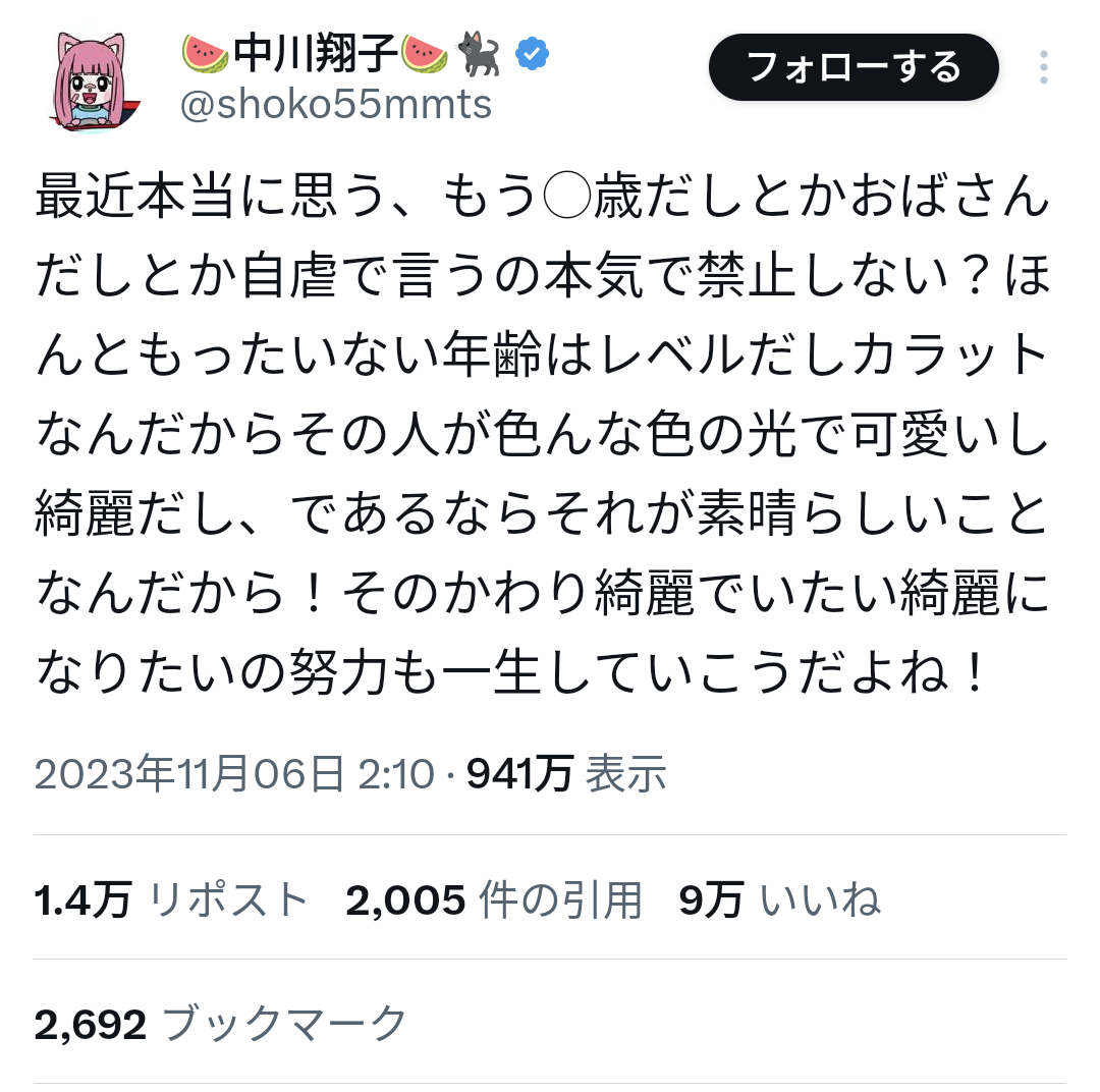 中川翔子さん「自分をおばさん扱いで自虐するの禁止しろ」←大バズリしてしまうwwwwwww