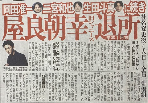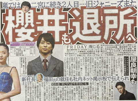 【闇深】櫻井翔もジャニーズ退社へ。キムタク以外全員退社する流れ